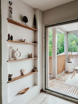 To soften the space and to avoid that clincal feel, I paired the white with brushed brass fixtures and brought in alot of warmth with the use of timber, rattan and simple decor pieces. I'm a minimalist when it comes to kitchens so choose to style with a few statement pieces. Here all I have used is some simple styling boards and vase with some fresh foliage.